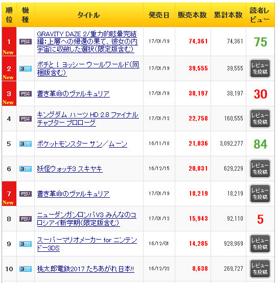 良ゲーがしっかり評価されて7万4000・・・。