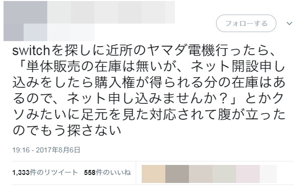 早くswitch品薄解消できないかな、そうすればこんな情弱騙すクソ野郎や転売屋まとめて居なくなるのに