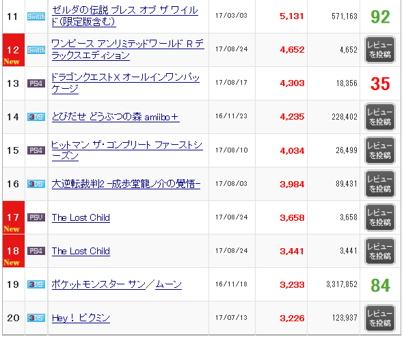 毎週ホライゾンの販売数が10万減ってゼルダの販売数に10万足されていくWikipediaか