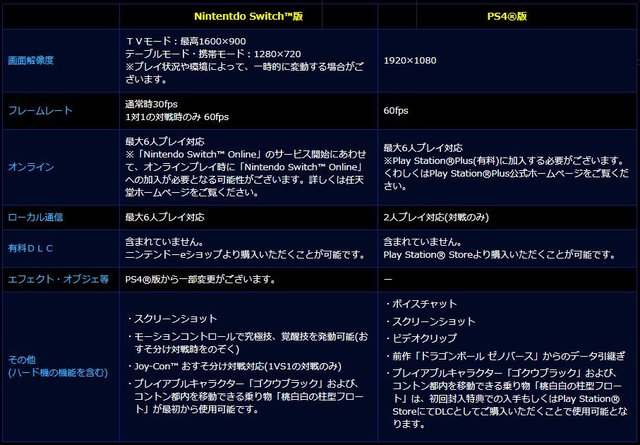 Switch版とのスペック比較表