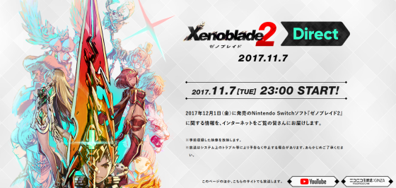 11月7日(火)23時より「ゼノブレイド2 Direct 2017.11.7」を放送します。12月1日(金)に発売のNintendo Switchソフト『ゼノブレイド2』に関する情報をお届けします。#NintendoDirectJP https://t.co/uG2mCEEKur