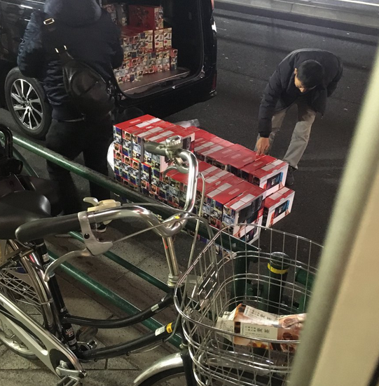 錦糸町駅前で大量の任天堂Switchをワゴン車に積み込むアジア系外国人達。