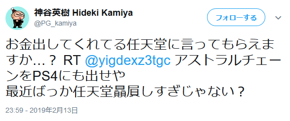 神谷が「お金出してくれてる任天堂」言ってるじゃん」