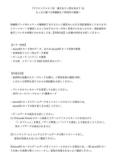 セーブ中に落ちたという報告もあるがSwitchの熱の管理すら出来ない馬鹿がエラー落としさせただけだろ