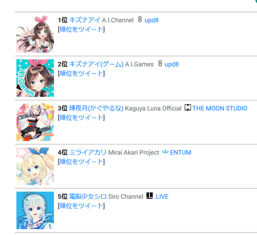 キズナアイが失速したのは夏頃から2号、3号なんてのが公式に出てきて