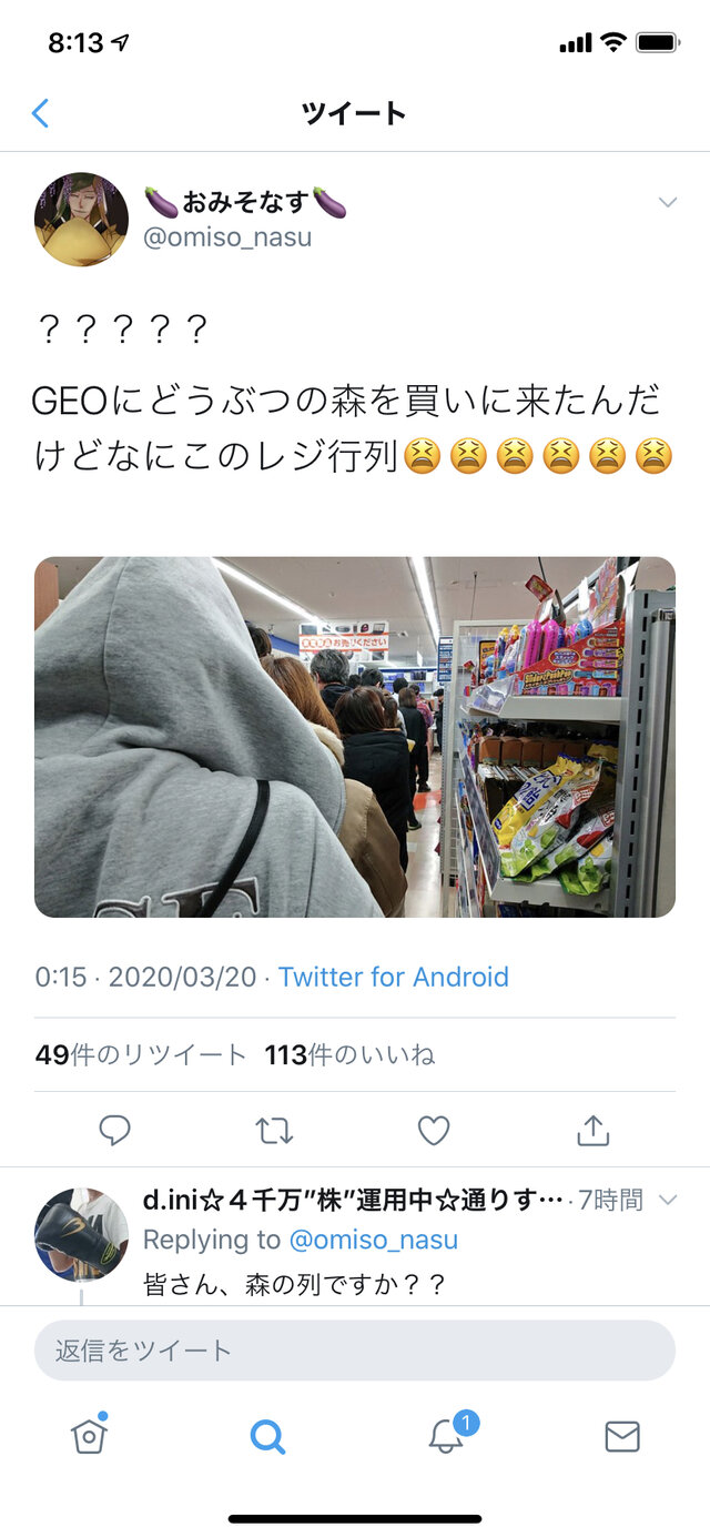 並んでたら中国語しか聞こえなかったから少しコロナが怖くなったよ。でも買えて良かった!ぶつ森遊びまくるぞ!