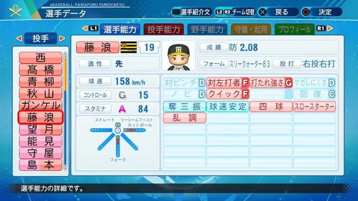 大したイニング投げてないのにスタミナ多すぎ