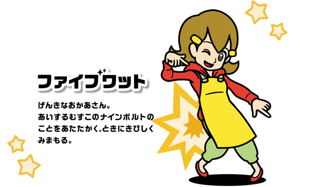 あいするむすこのナインボルトのことをあたたかく、ときにきびしくみまもる。