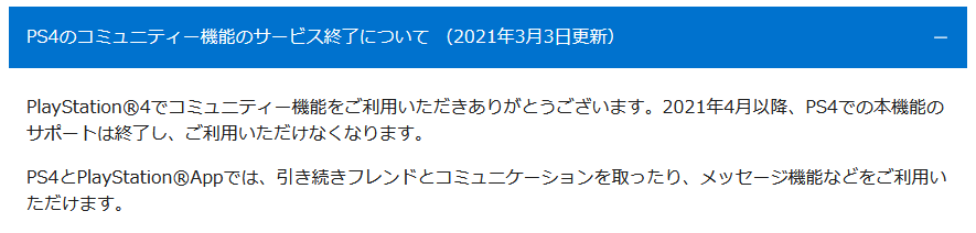 コミュニティはPS5には存在しない機能だし旧世代が切り捨てられるのは当然
