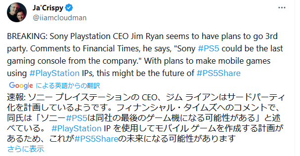 寧ろ2020年にはライアンが既にプレステ撤退を予定してたって事じゃん?