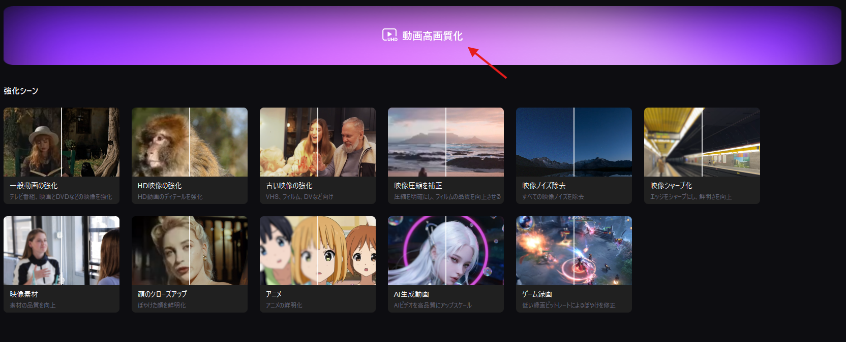 高画質化以外、動画修復、白黒映像をカラー映像に変換する機能などを提供しています。