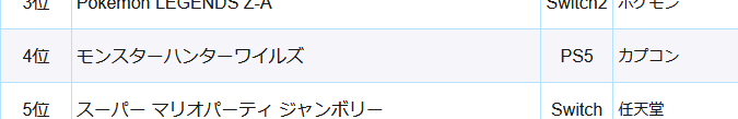 つか任天堂ソニー問わず同一タイトルだと、新規モンハン>ドラクエナンバリング>FFナンバリング>他って構図は変わらんし