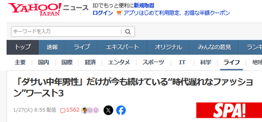 別に最新の流行に合わせろとは言わんけど、着るもの更新する時くらいは考えて選べよとは思う。